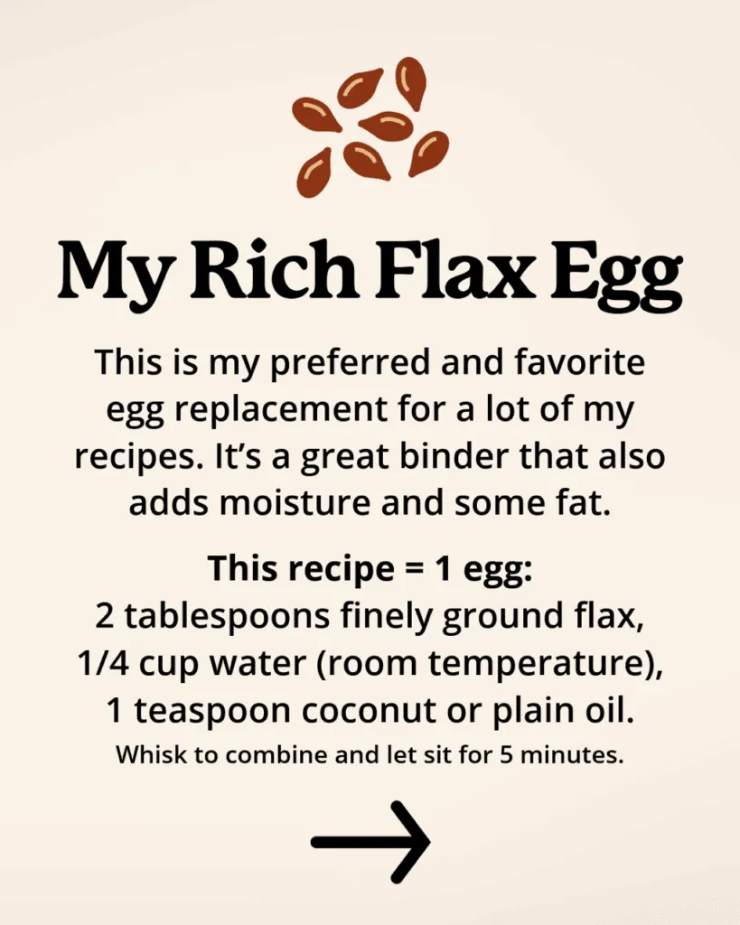 PRO TIP: if a recipe calls for multiple eggs (like two), you could use two different substitutes (like one flax egg and some vegan yogurt for the other egg) for the best of both worlds.