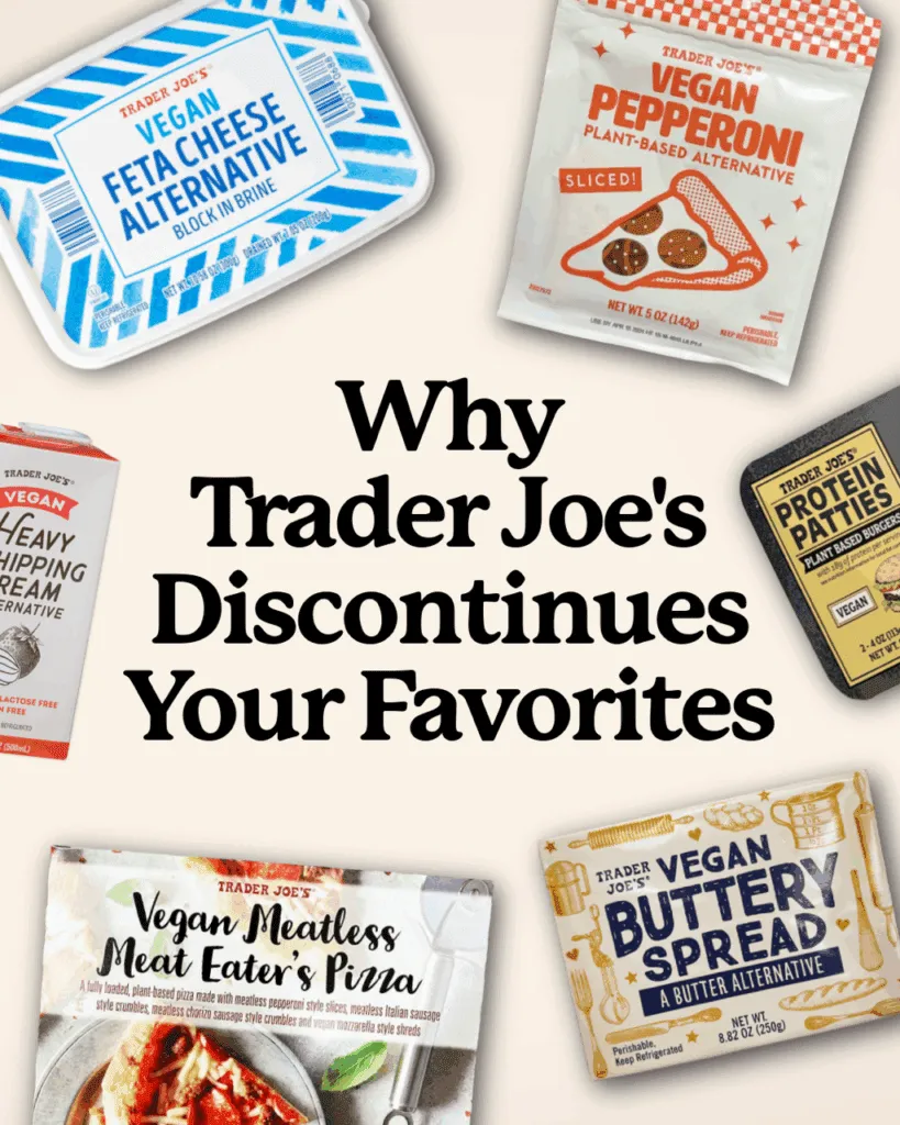 If you’ve ever fallen in love with a Trader Joe’s snack or frozen meal only to return and find it gone, you’re definitely not alone. Few things are more heartbreaking than discovering that your go-to product has been discontinued. From their vegan buttery spread to their beloved vegan brioche loaf and dairy-free ice creams, Trader Joe’s fans have a long list of “retired” favorites.