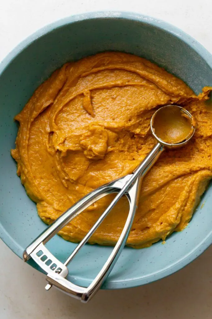 - Pumpkin purée: 3/4 cup from the can, no blotting needed.