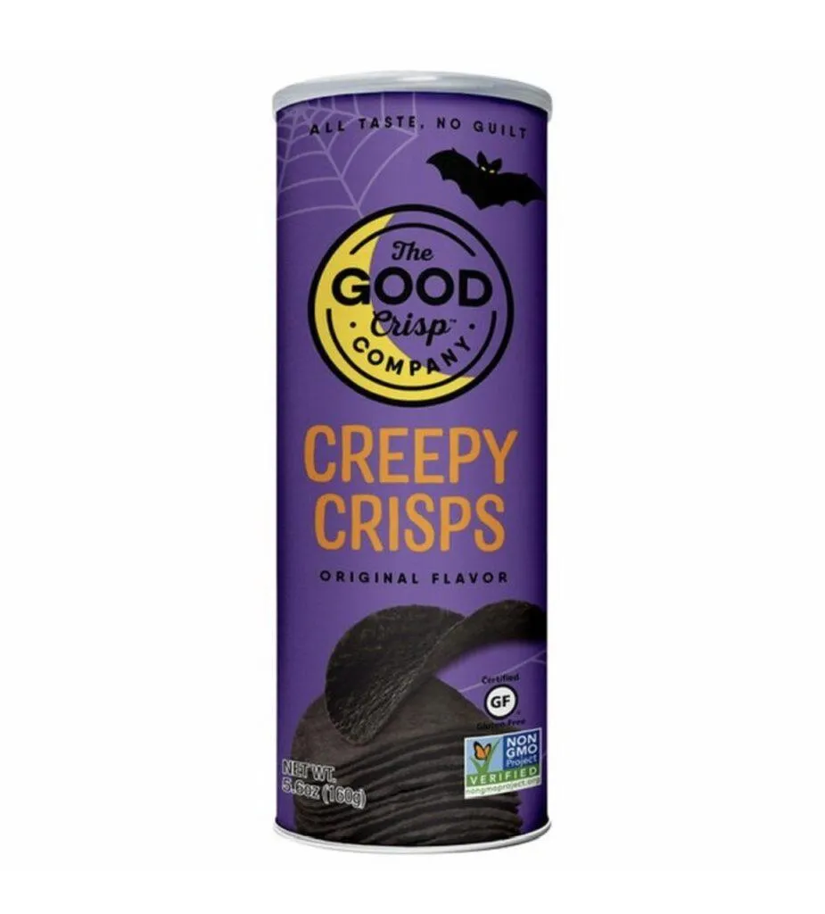 Spooky-season black colored plain flavored chips made without dairy or eggs for crunchy fun. Available at Whole Foods Market, Sprouts Market and other regional retailers.