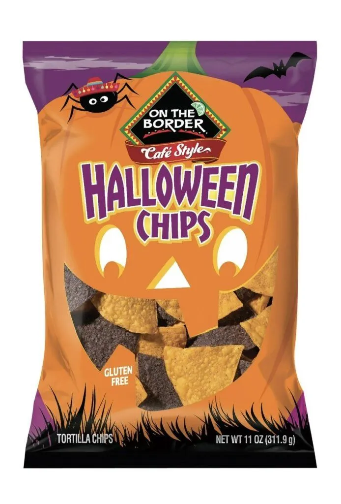 There are a few brands like On the Border that have festive orange and black tortilla chips. .Shop on Walmart or at many national and regional retailers.
