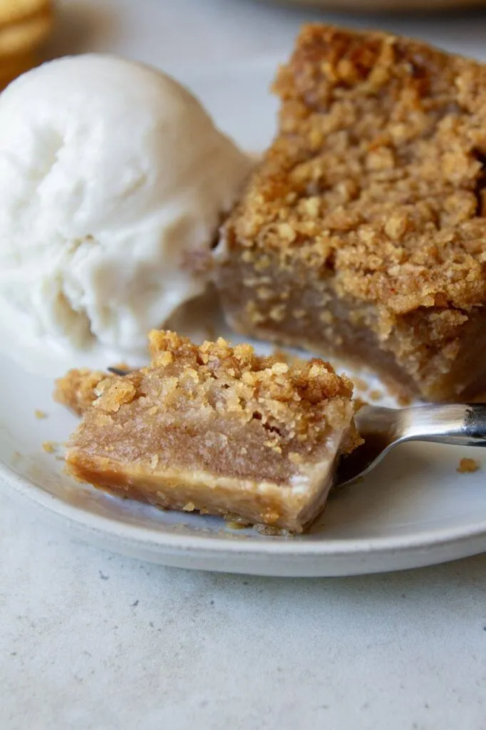 You’ll still pour plenty of syrup over the crackers and it should look a bit wet before baking, but not so much that it drowns the crust. Once cooled, it sets beautifully into that faux apple consistency everyone remembers.