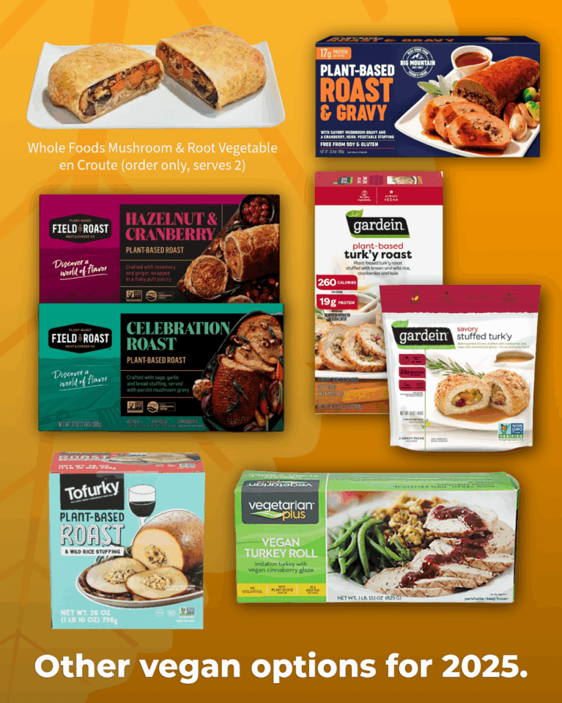 Note: Whole Foods 365 frozen store-brand vegan roast options were reportedly discontinued last year, so you’ll want to check what’s available this year at their stores.