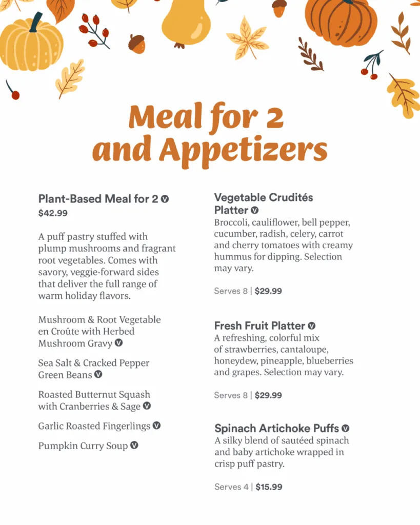 Also back for 2025 is the vegan Plant-Based Meal for Two ($42.99), a ready-to-heat vegan dinner that delivers all the cozy holiday flavors without the stress of cooking everything from scratch.