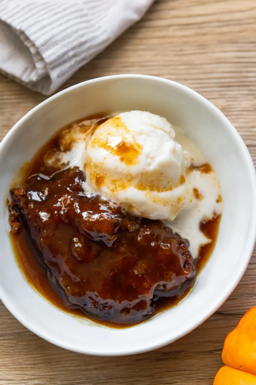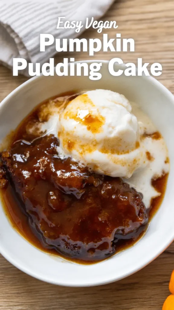 This pudding cake is best served warm so the sauce stays gooey and the flavors shine. Top with vegan vanilla ice cream or non-dairy whipped cream. It’s a dessert that feels special but doesn’t require much effort, just the way a fall dessert should be.