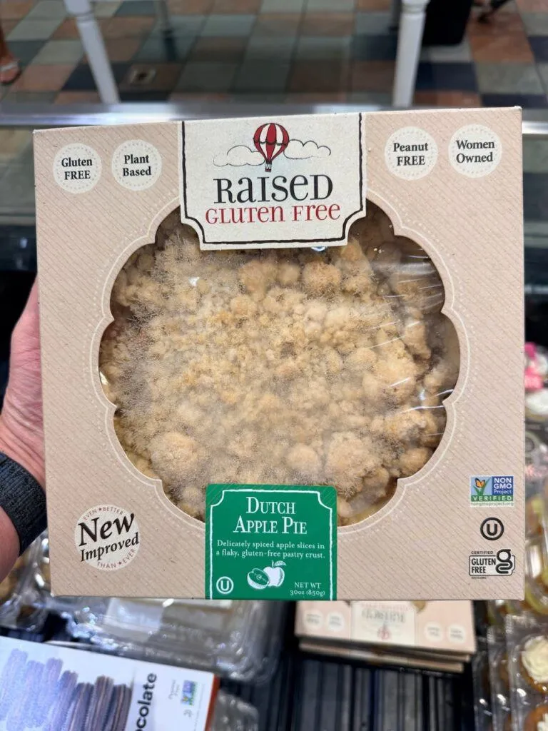 Raised Gluten Free brand is another option if you want something both vegan and gluten-free. Their Pumpkin, Apple, Cranberry Apple, Strawberry Rhubarb, and Chocolate Silk pies are all plant-based and available at Sprouts, Fresh Thyme, and many natural grocery stores.