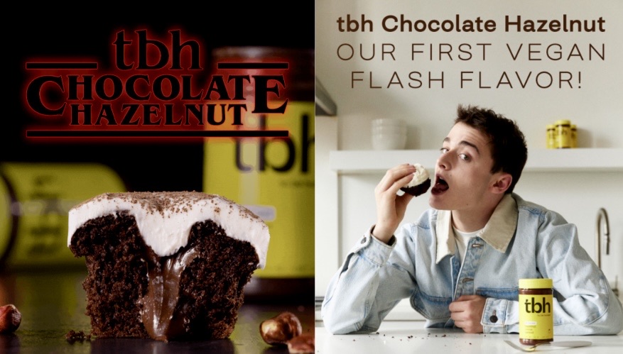 - A vegan chocolate hazelnut cupcake created with tbh hazelnut spread (Noah Schnapp from Stranger Things now defunct brand) appeared as a flash flavor offering.