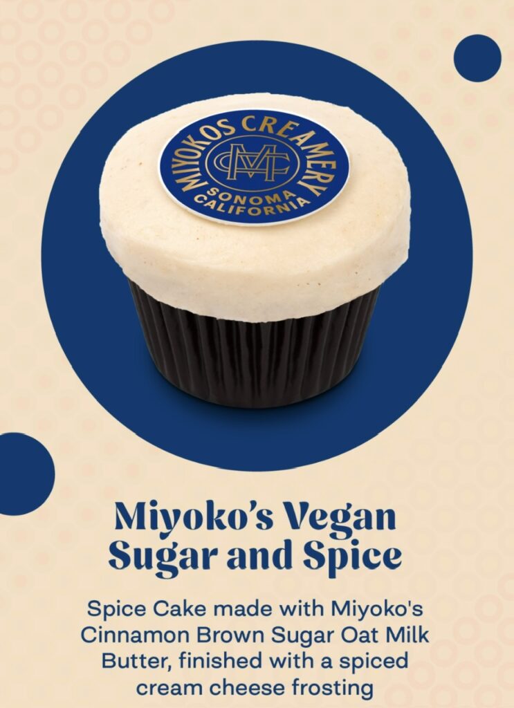 - A Miyoko’s Creamery collab featured a special vegan sugar & spice cupcake that ran for a limited time during the fall season of 2024.