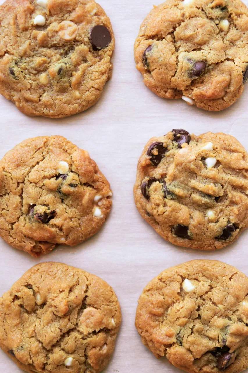 If you want your peanut butter cookies to have the soft, chewy texture of classic chocolate chip cookies, try adding an additional 2–3 tablespoons of plant milk to the dough. Start with a little and mix in gradually as you can always add more, but you can’t take it away. The extra moisture encourages the dough to spread slightly more while baking, giving a tender, chewy bite similar to chocolate chip cookies. Chocolate chip cookie dough is looser and not as stiff as my base recipe so it’s a personal preference. I like them both ways.