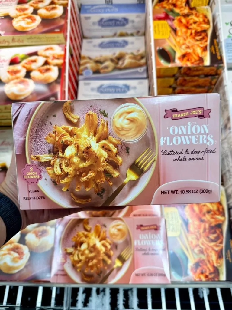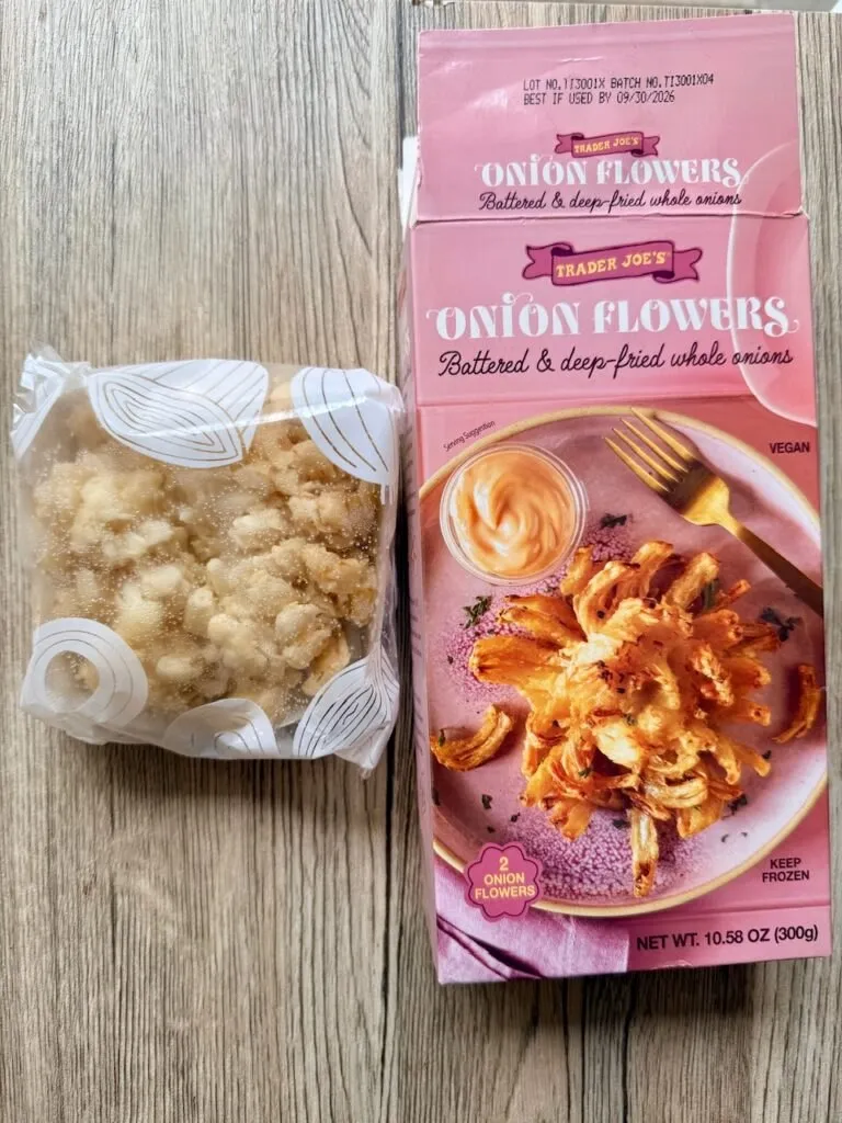 Trader Joe’s just dropped something I genuinely never thought I’d see in the freezer section: vegan onion flowers. As far as I can tell, these are the first frozen, fully vegan blooming-onion–style product widely available in U.S. grocery stores and yes, that alone makes them worth talking about.
