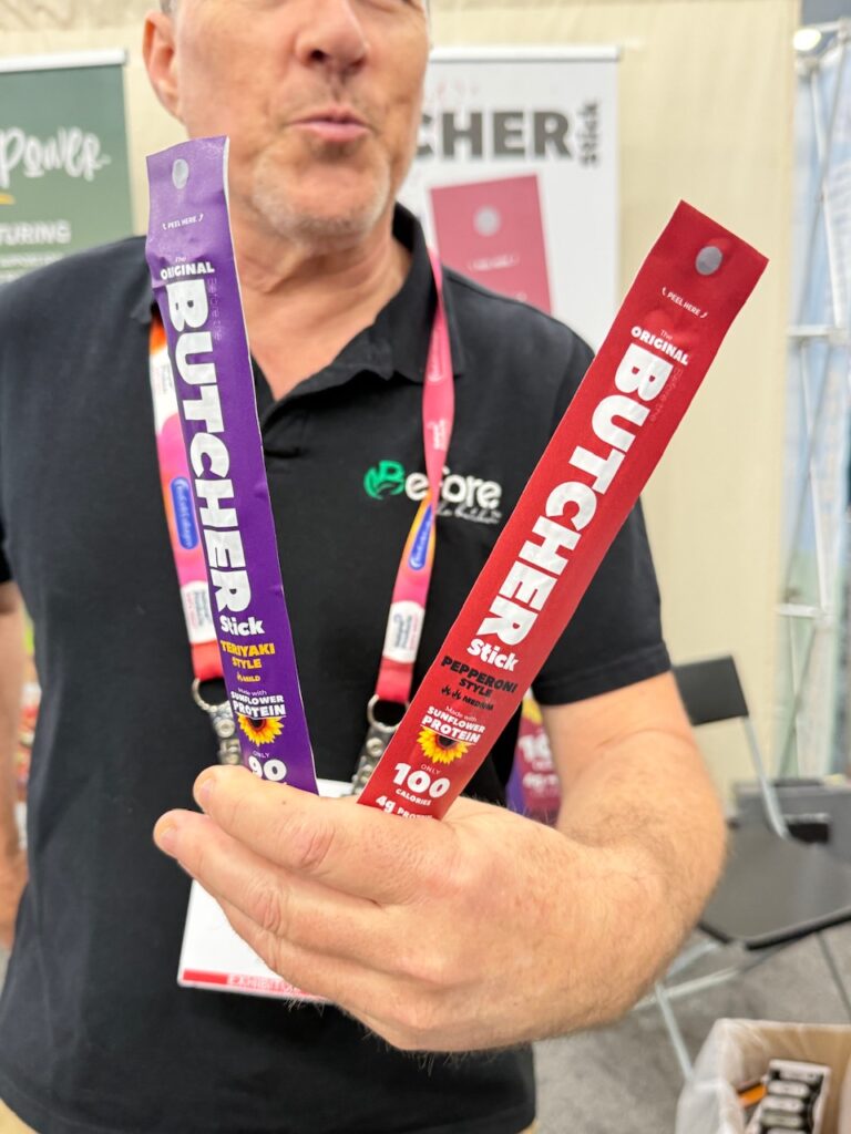 Switch was new to me, and a pleasant surprise. Their vegan proteins included options I hadn’t seen before, like kafta and chicken shawarma, and their chicken tender was outstanding. Argo was sampling plant-based jerky sticks in four flavors, all vegan confirmed. Upton’s has reworked their seitan recipe for a softer texture as part of their new Inspired Plant Proteins line, with additional flavors in development. They’re also marking 20 years in business, a genuine milestone for an independent brand.