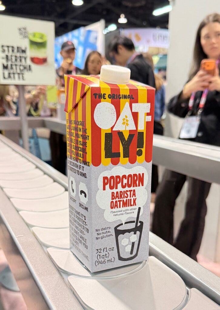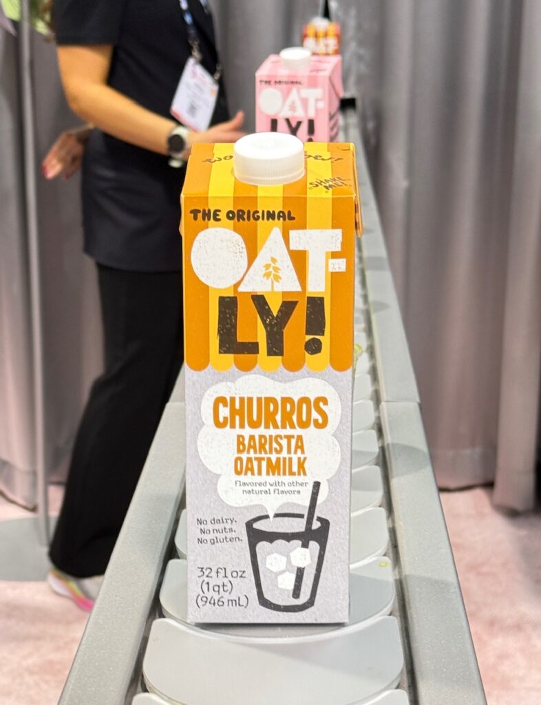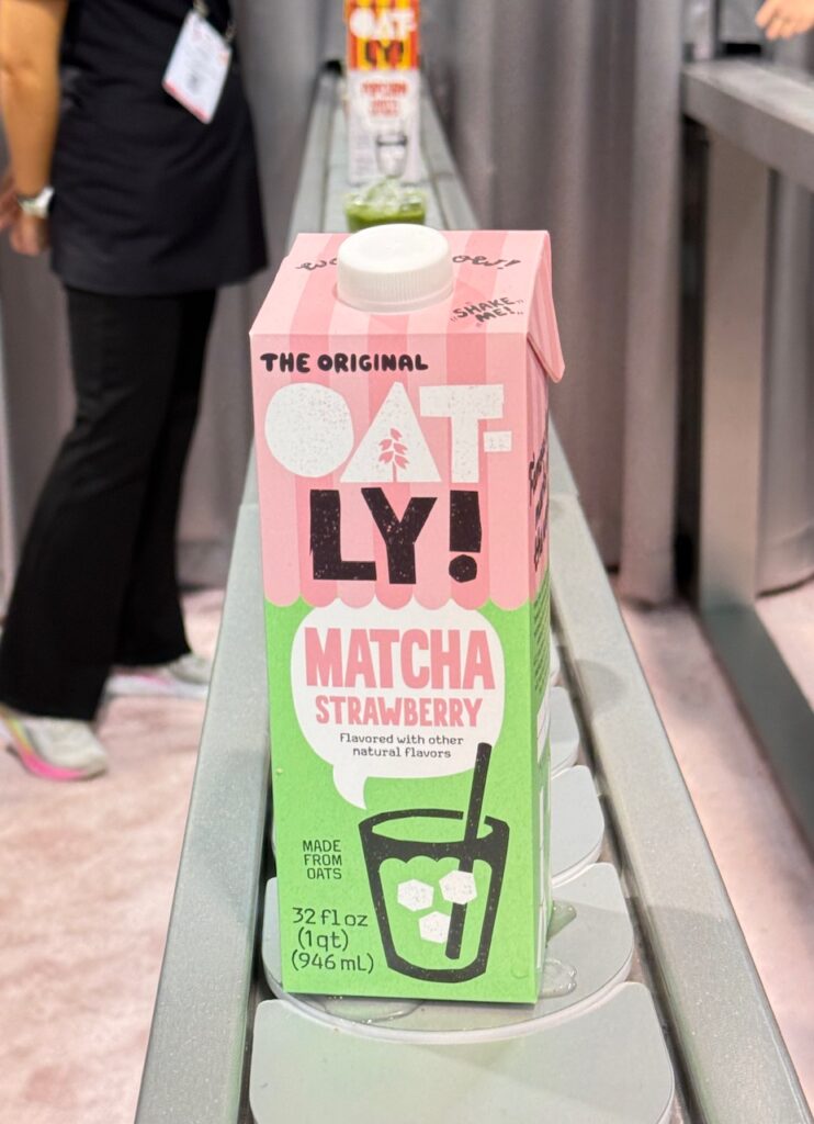 Looks like Violife may be rebranding their block cream cheese as “Supreme” and they sampled a cheesecake with it that was so good. Oatly had new fun flavors on a conveyor belt with drinks made from them including popcorn, matcha strawberry and churros, plus a regular matcha that should be hitting shelves this year.