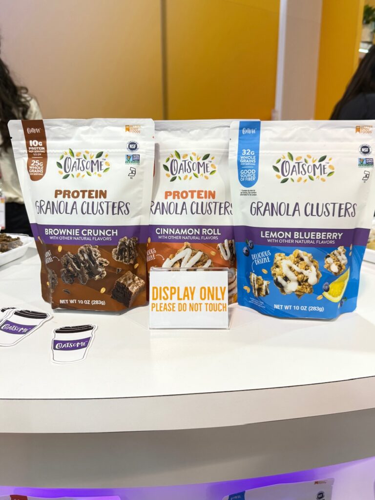 There were plenty of non-dairy options to discover this year. Nature’s Charm was showcasing their ube condensed milk, and they actually knew about my Rice Krispies treats recipe that uses their oat milk condensed milk as a secret ingredient, which was a fun moment. Jeni’s had a delicious banana pudding ice cream coming to both their scoop shops and retail pints. Nut Pods showed off new packaging and some limited flavors rolling out this year, and Elmhurst is expanding into protein drinks, which fit right into one of the bigger trends of the show. It felt like every brand wanted to lead with protein this year, though I’ve never actually heard of anyone being deficient. Shire’s ravioli is a brand I’d love to see in more stores and they’re actively working on that, plus they were sampling a new vegan risotto that was very good. Fabalish always brings creative flavors to their excellent condiment line, and their fry sauce was no exception.