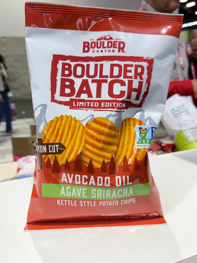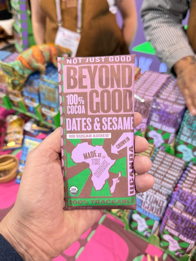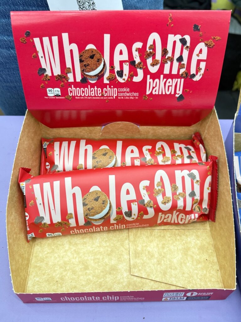 Wholesome Bakery is a new gluten-free brand with delicious sandwich cookies they said are at Erewhon now. Folkland had Cajun fries on display, Little Latke potato crisps tasted just like their namesake, and Beyond Good had a new dates and sesame bar out for sampling.