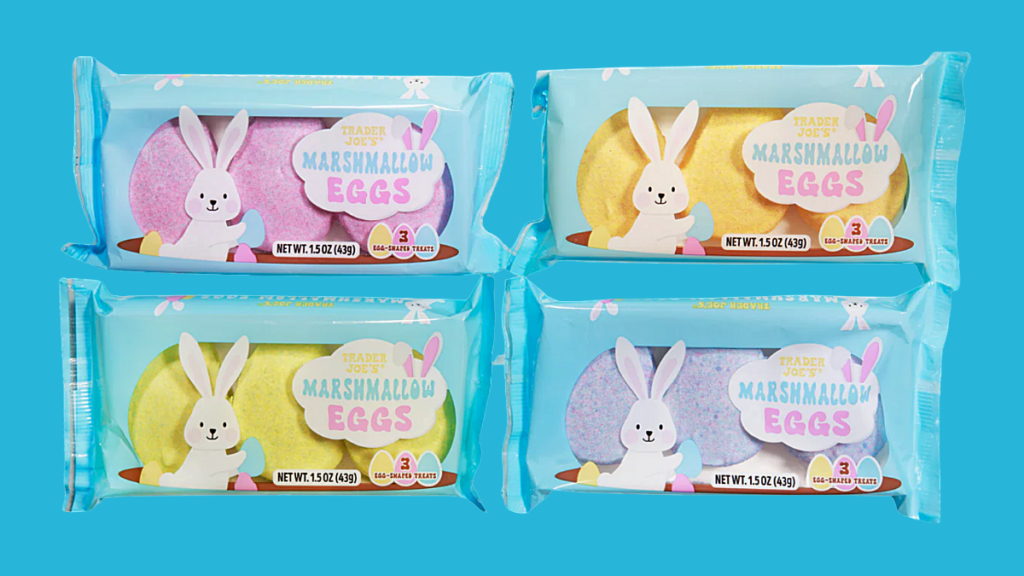 Trader Joe’s has their new egg-shaped vegan marshmallows in stores right now. Seasonal and limited, so don’t wait on those.