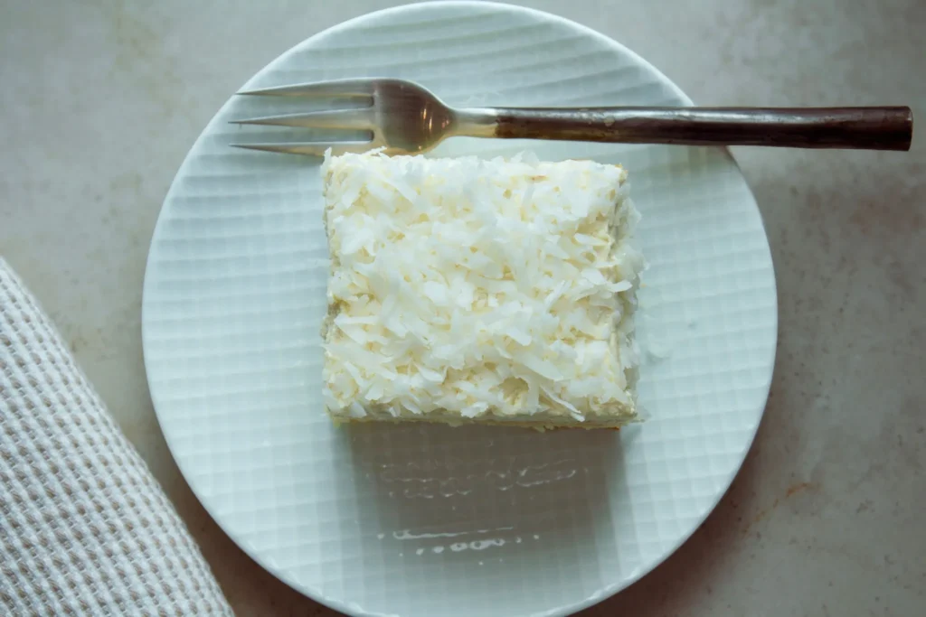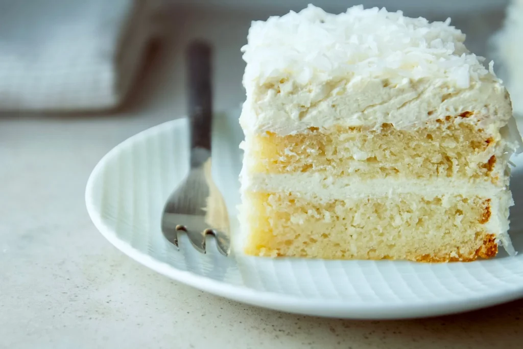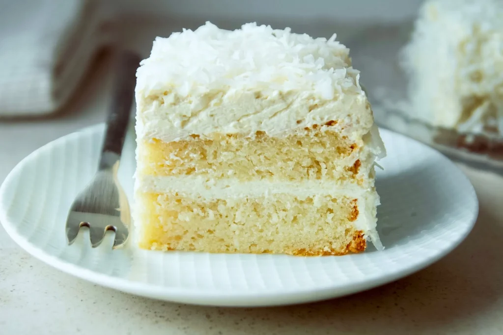 For this cake, ermine frosting was the right call for three reasons. First, the texture matches the original Pepperidge Farm frosting far better than any buttercream I tried. Second, the lower sweetness level lets the coconut flavor in the cake actually come through. Third, it takes to a coating of sweetened shredded coconut better than any other frosting. The coconut sticks to it, nestles into it, and looks absolutely beautiful.