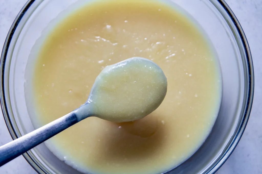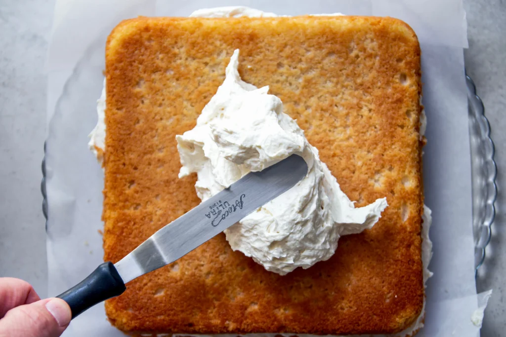 My first instinct was a classic vegan buttercream. Powdered sugar, vegan butter, a splash of plant milk. Done, right? Wrong. The problem with traditional buttercream on this particular cake is that it tastes too sweet and too flat. The original Pepperidge Farm cake I remembered had a frosting that was lighter, silkier, and less cloying than a standard buttercream. Straight powdered sugar frosting wasn’t going to cut it.