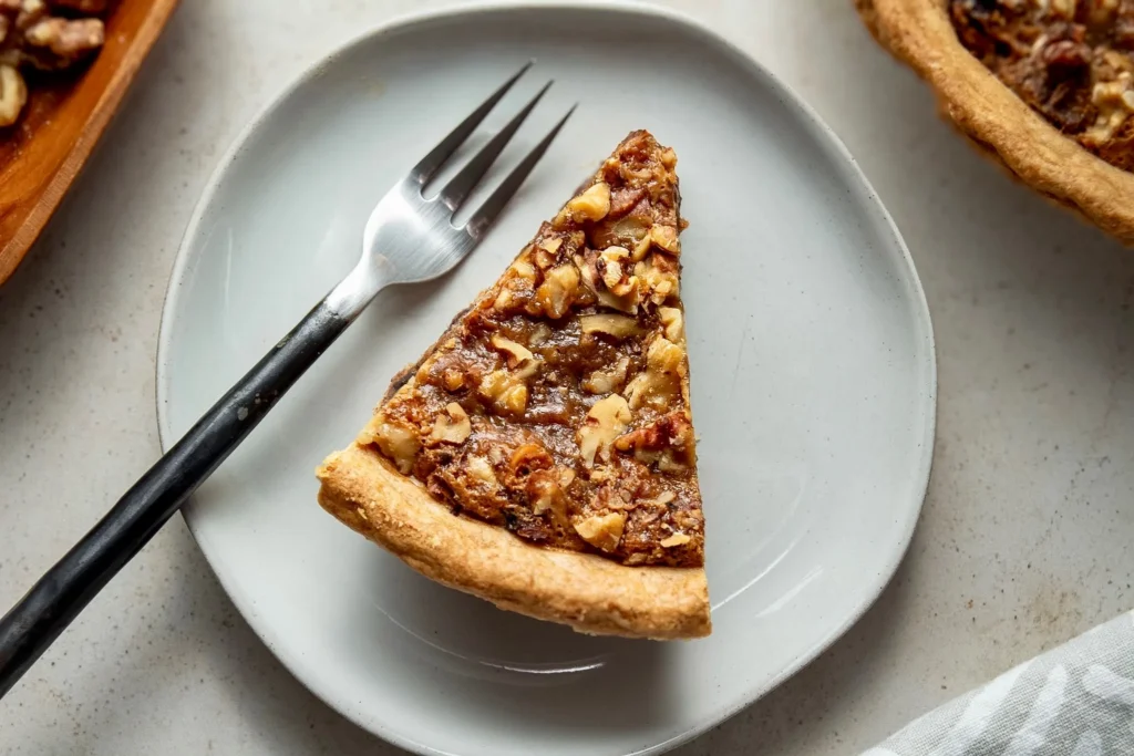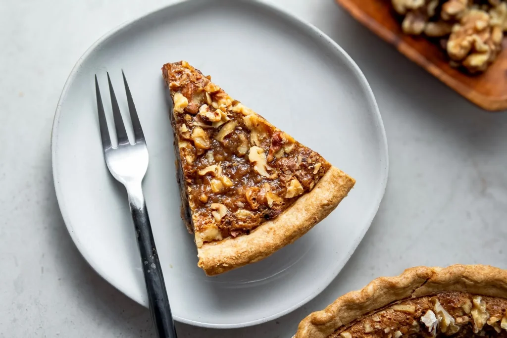 This pie lives somewhere between a vegan pecan pie and a warm chocolate chip skillet cookie. It’s gooey and caramel-rich like the former, and fudgy and indulgent like the latter. The toasted walnuts bring an earthiness that pecans don’t, the semi-sweet chocolate melts into dark, rich pockets throughout the filling, and the bourbon ties it all together with a warmth that lingers. It’s a dessert that’s familiar enough to feel comforting but different enough that people will want to know what’s in it. If you’ve made my pecan pie and loved it, this is the natural next step with the same proven base, but a completely different final destination.