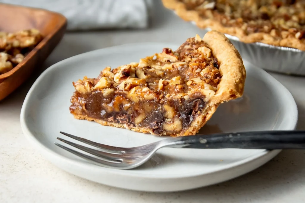 - Distinct from pecan pie. This pie is genuinely a different eating experience due to the addition of chocolate and walnuts.