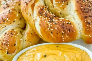 Cheese Stuffed Soft Pretzels with Vegan Beer Cheese Dip