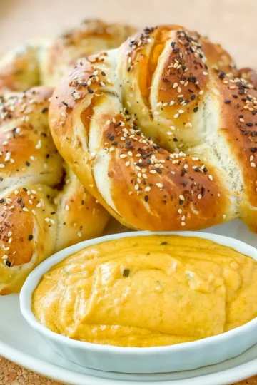 Cheese Stuffed Soft Pretzels with Vegan Beer Cheese Dip